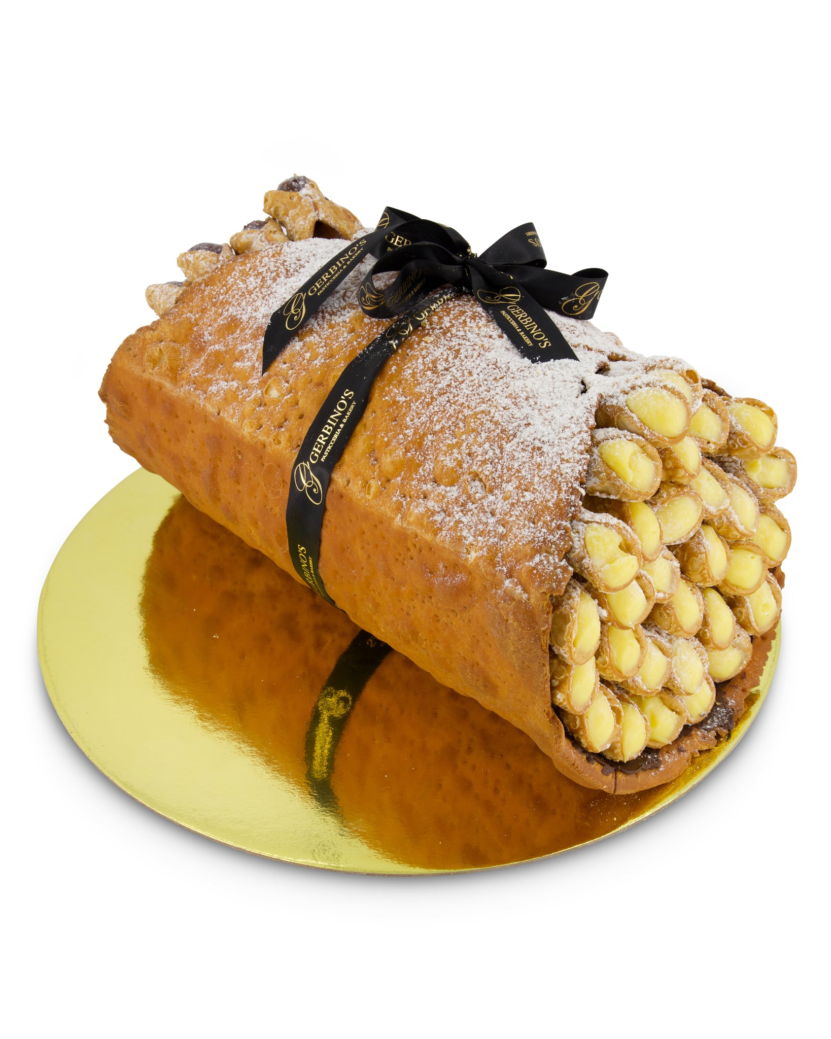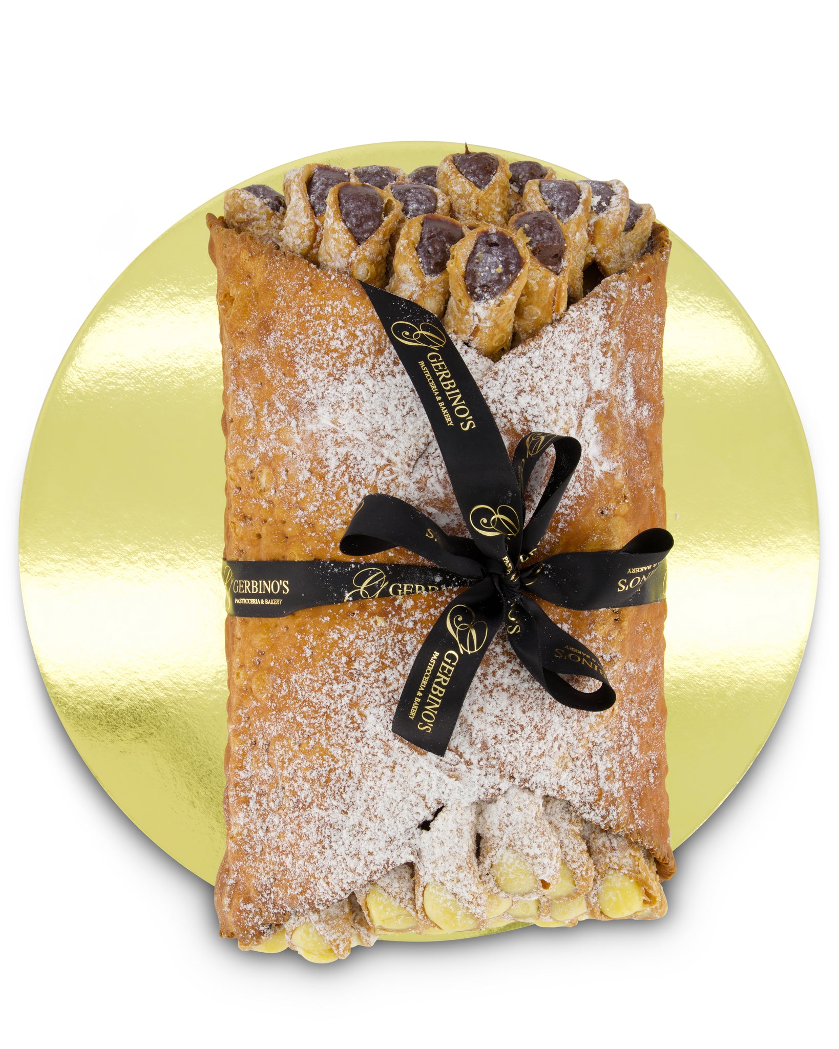 A ultimate showstopper for a milestone event or celebration, our signature cannoli cake - basket filled with mini cannoli is a crowd pleaser.