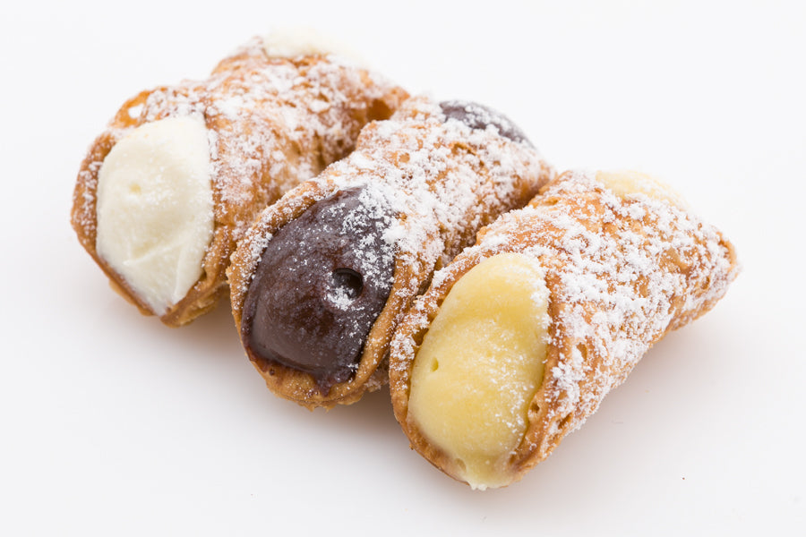 Medium Cannoli inside: (1 Medium = 2 Mini). These are chocolate-lined, allowing them to stay fresh and crunchy for 2–3 days. Just let us know if you would prefer this option.